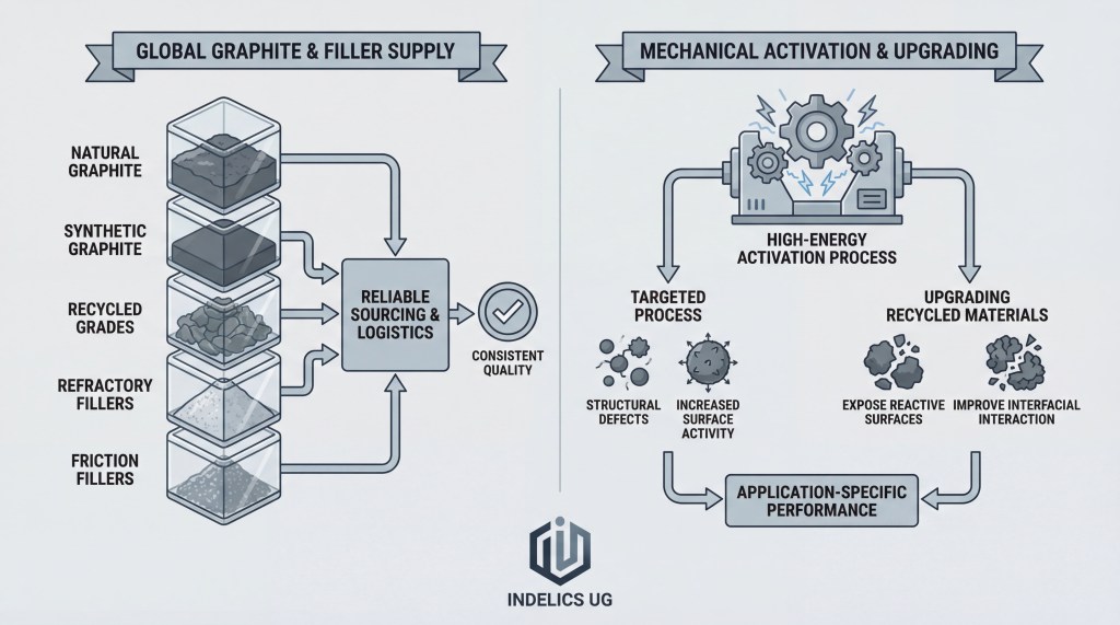 Recycled and secondary raw materials often exhibit variability in particle size, morphology, and surface condition. Mechanical activation enables functional upgrading by: